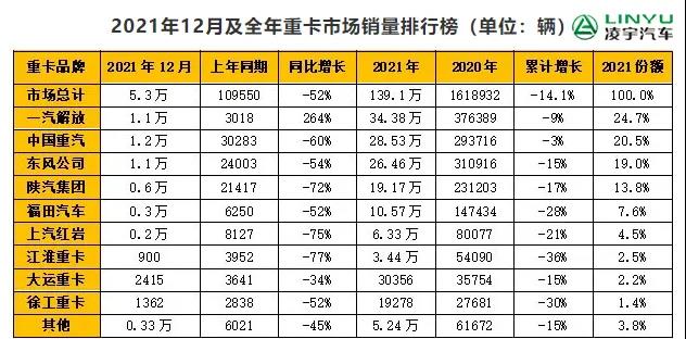 【重卡新聞】12月重卡銷售量出爐!2021年度行業(yè)排位賽“塵埃落定”