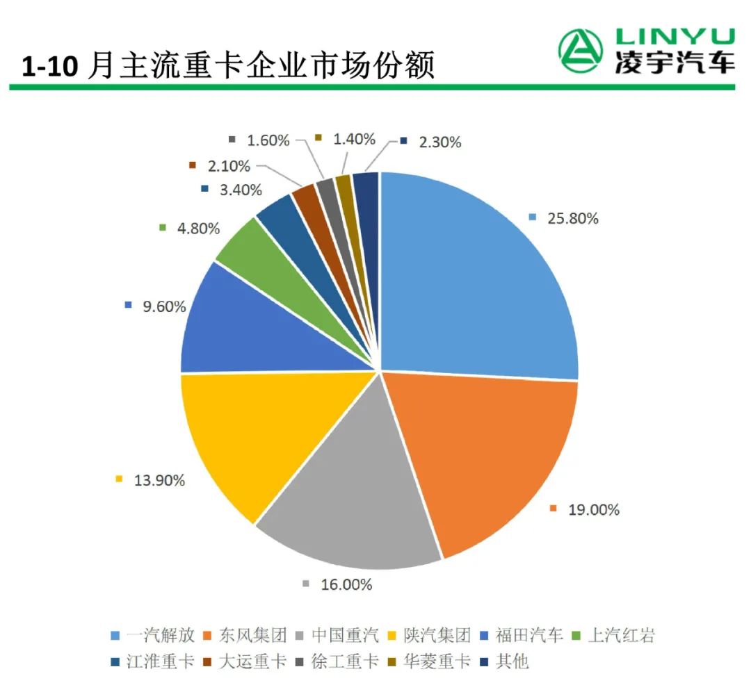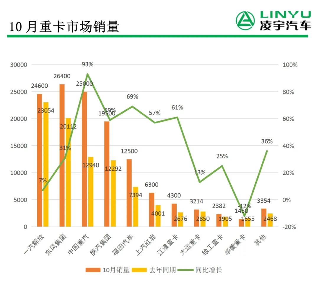 在十月的銷量大戰(zhàn)中,解放依然穩(wěn)步邁進,表現(xiàn)為亮眼的企業(yè)是東風(fēng)和重汽。