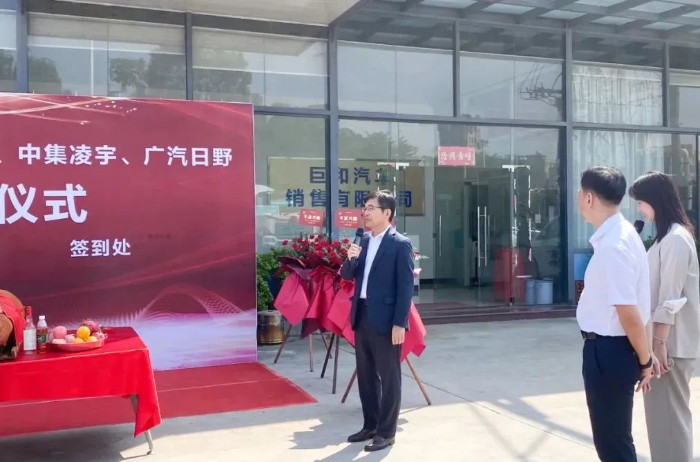 隨后,廣汽日野總經(jīng)理保田俊朗先生發(fā)表致辭,他表示:此次交付的廣汽日野攪拌車搭載世界上嚴(yán)苛的達(dá)喀爾拉力賽同款發(fā)動機(jī),動力強(qiáng)勁,性能更穩(wěn)定,加上凌宇上裝,必將給客戶帶來高質(zhì)量的經(jīng)濟(jì)創(chuàng)收。