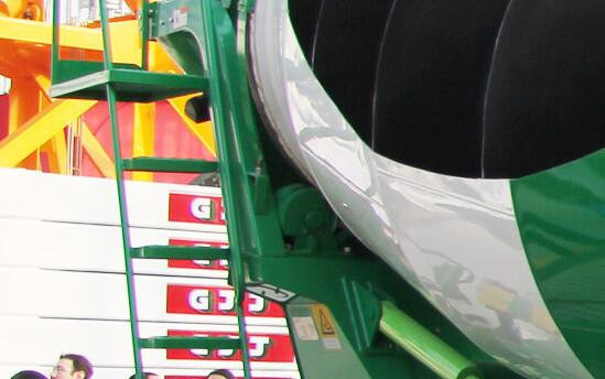 3、攪拌罐體:攪拌筒是整個(gè)攪拌運(yùn)輸車的關(guān)鍵部件,是存儲(chǔ)混凝土的容器,對防止混凝土固化、離析起著決定性的作用。罐體內(nèi)部有葉片,主要起攪拌與導(dǎo)料的作用。