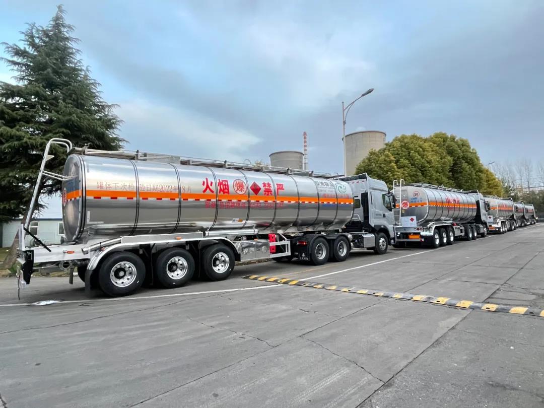 11月22日,冬日小陽春,39輛液罐車在凌宇廠區(qū)集結(jié)完畢,銀色的罐體閃閃發(fā)亮,車輛排列整齊,整裝待發(fā)。