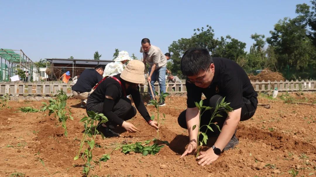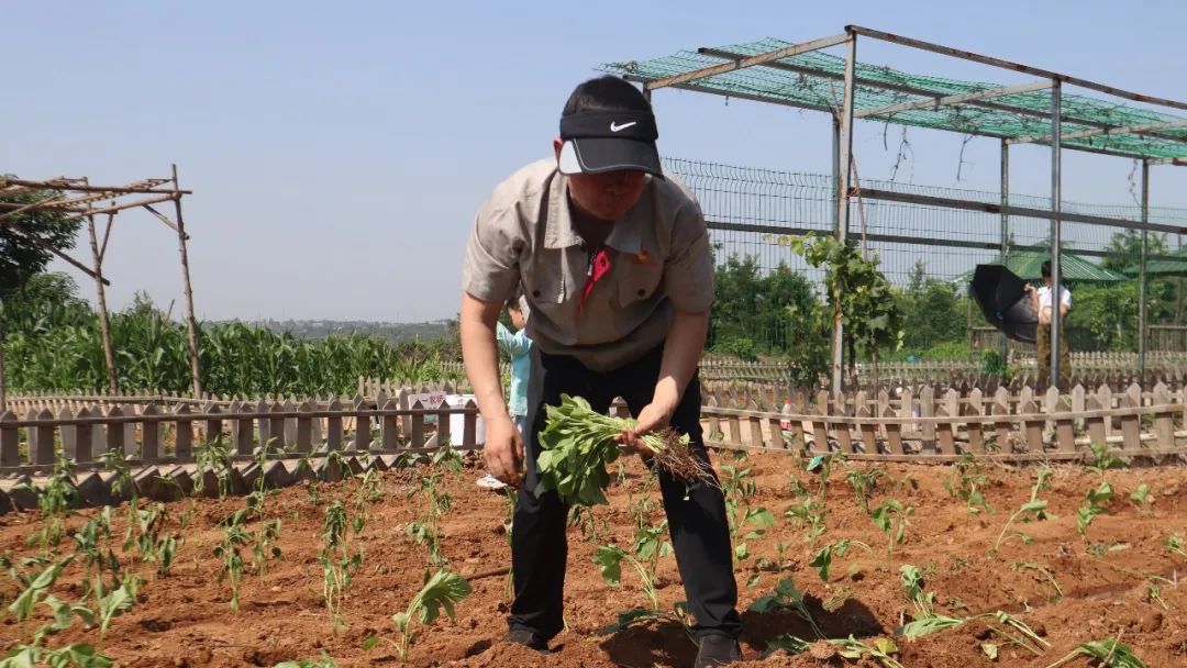 同志們分工協(xié)作,在有經(jīng)驗的老同志指導和示范下,依次開展松土、起壟、插秧、澆水、培土等工作。汗水滴灑在泥土里,歡聲笑語回蕩在空氣中?;顒又?,還有不少黨員帶著孩子來到現(xiàn)場,讓祖國的下一代在了解種菜過程的同時,體驗勞動果實的來之不易。